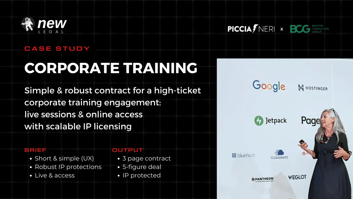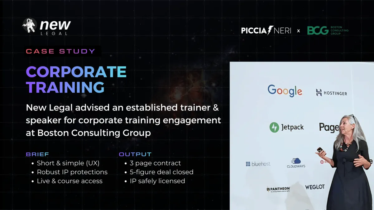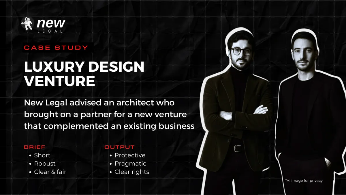 At New Legal, we provide simple to more comprehensive contracts, scalable legal solutions, and expert guidance to help you protect your IP, opportunities and ideas, structure deals, and stay compliant, without the sky-high legal fees or unnecessary complexity.