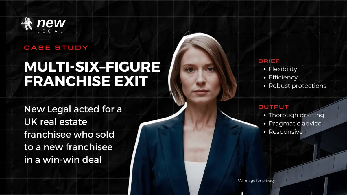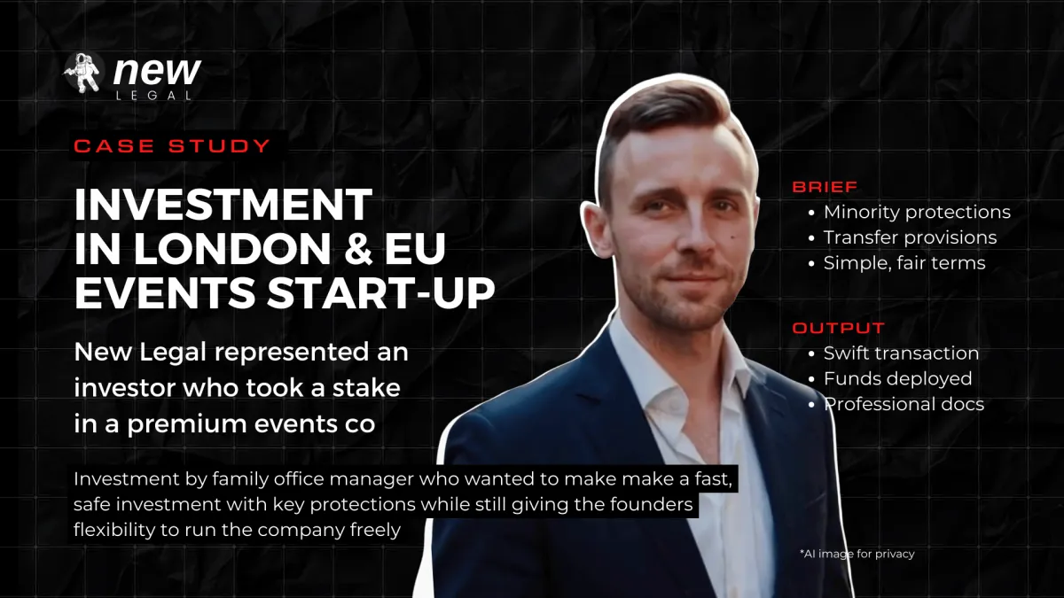 *T&Cs apply. N3WWW LTD (trading as 'New' & 'New Legal'), part of the New Legal Group, is a limited company registered in England & Wales (no. 13889459), registered office Suite 169, 23 King Street, Cambridge, CB1 1AH. New is a business infrastructure platform. New Legal is a legal consultancy, not a law firm, and is not authorised and regulated by the Solicitors Regulation Authority. We do not provide regulated accountancy or audit services ourselves. Accountancy, bookkeeping and tax services are delivered by our third-party partners. New is not an insurance broker or FCA-regulated insurance intermediary. English law only. Sponsorship, promotions and credits apply to selected products, services and tiers only – T&Cs and eligibility apply. Subject to availability. Services are provided subject to our Terms of Service & Privacy Policy available here: https://new-legal.com/legal